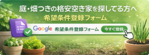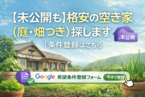 【未公開も】格安の空き家(庭・畑つき)探します|条件登録はこちら
